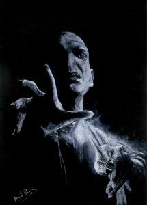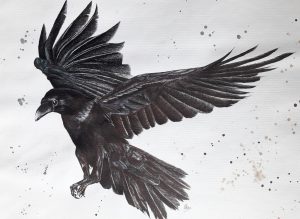 MENCIÓN DE HONOR a David Rus por la obra titulada «El cuervo y el gorrión» (Lápiz / papel hueso 100 x 70)