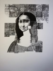 MENCIÓN DE HONOR a Soledad Fernández por la obra «Boceto para un cuadro» (Dibujo / papel artesano encolado en madera 80 x 122)