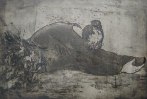Alberto Duvall. Buscando alimento. Grabado calcográfico sobre lámina de zinc. 56 x 44