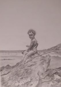 David Sánchez. La espera. Grafito – mixta / papel. 100 x 70