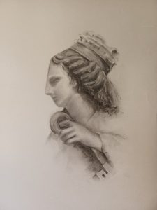 Medalla de Dibujo Marceliano Santamaría Sedano, dotada con Medalla y diploma a Teresa Romero. Paternidad. Carbón / papel. 50 x 70