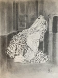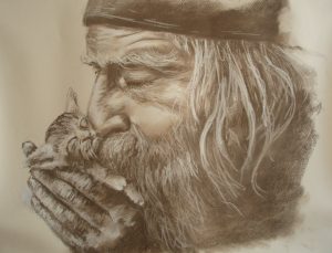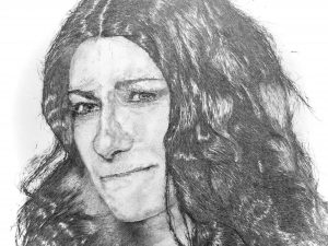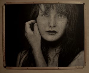 MENCIÓN DE HONOR, dotada con diploma a Lydia Gordillo. Retrato. Grafito / papel. 30 x 60