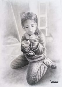 Rui Chen. Retrato de chica joven. Lápiz / lienzo. 40 x 60