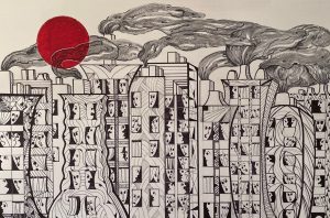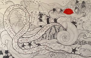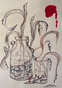 Lydia Gordillo Pereira. No a las guerras. Tinta – mixta / papel. 70 x 56