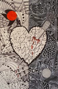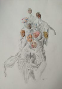 Mención de Honor, dotada con diploma a Felipe Alarcón Echenique. A la sombra del dolor. Mixta / cartulina. 70 x 50