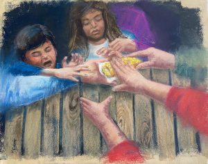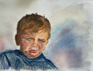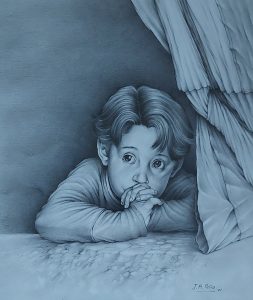 MENCIÓN DE HONOR, dotada con diploma a Pilar Cortés. La mirada de un niño. Mixta / papel. 70 x 50