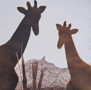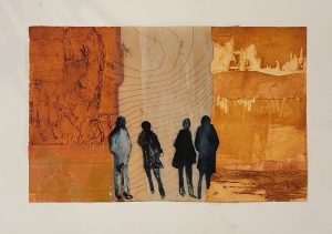 Caminata bajo el Ocaso. Grabado y aditivas / papel. 24 x 37