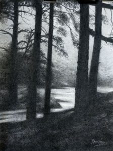 Niebla en la Laguna Negra. Carboncillo / papel. 63 x 49