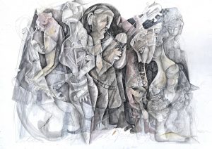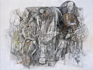 Crónicas en blanco y negro III. La ciudad de las columnas. Mixta / cartulina. 70 x 100