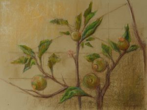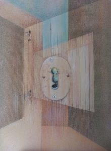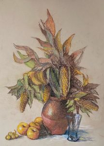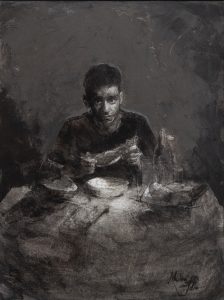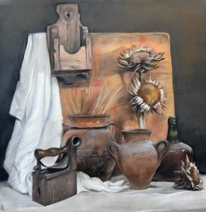Bodegón de Sandía y Rodrigo. Mixta / papel encolado en tabla. 40 x 30