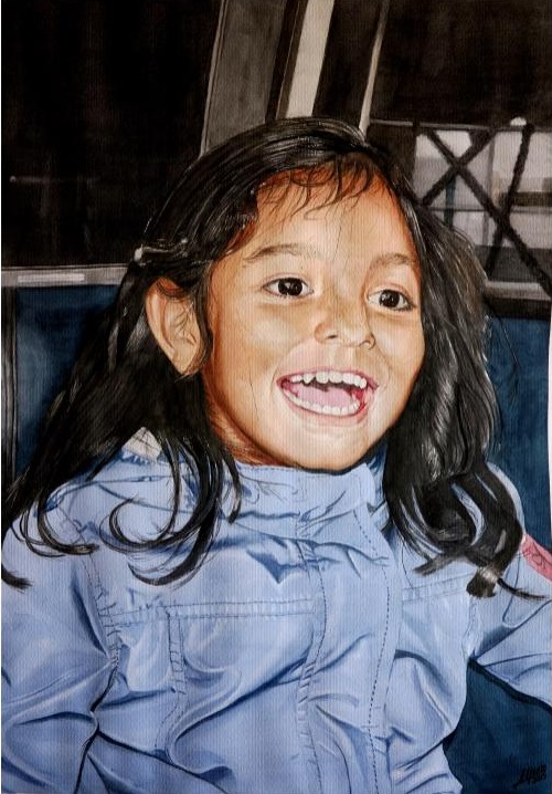En este retrato intenté mostrar esa “manera de ser” de una niña de cinco años, llena de vitalidad y lo feliz ella era en aquellos años.