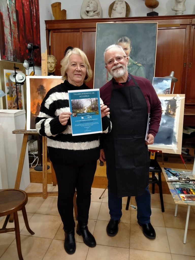 En la semana del 2 al 6 de febrero de 2026, la Asociación Española de Pintores y Escultores ha tenido lugar el Taller intensivo de acuarela impartido por el socio Juan Ramón Luque Ávalos, después del éxito que supusieran los talleres realizados con anterioridad, cuyo eje central fueron la nieve y el agua y su transparencia.