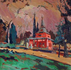 Iglesia rosa. Óleo / lienzo. 101 x 77