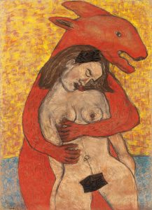 La Bestia. Pastel de tiza, mascarilla / papel. 164.5 x 100
