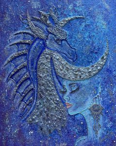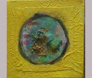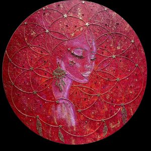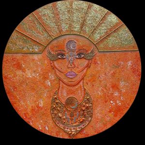 Alas del Éxito. Lienzo, acrílico, elementos decorativos, ámbar natural y citrino. 60 ⌀