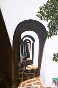 Cuesta de Moyano. Madrid. Acrílico y óleo / lienzo. 54 x 73