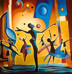 Danza de los planetas. Acrílico / lienzo. 90 x 90