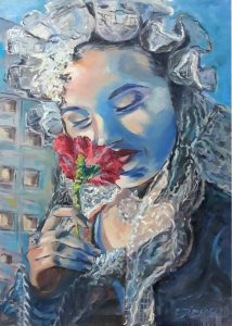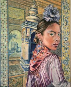 Retrato de la actriz española Pastora Vega. Acrílico / lienzo. 81 x 81