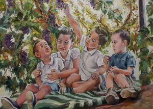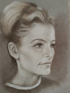 La encantadora Conchita madrileña, descendida de la nube de internet. Pastel seco y pastel óleo / papel. 80 x 80
