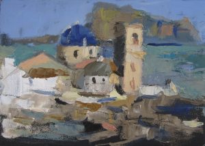Día brillante en Grecia. Acuarela / papel. 38 x 38