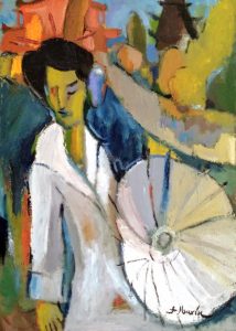 Mujer con sombrero. Óleo / tabla. 68 x 37