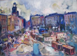 Puerta de Sol Madrid. Óleo / lienzo. 50 x 73