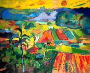 Paisaje tropical. Óleo / lienzo. 81 x 100