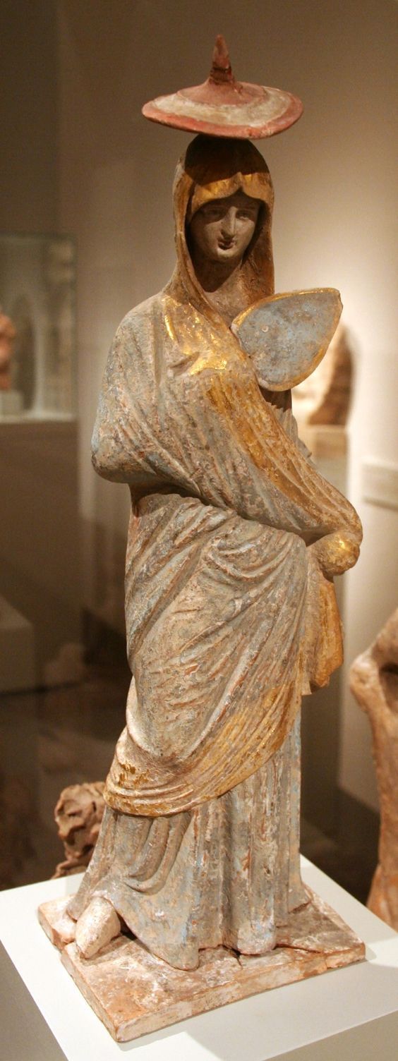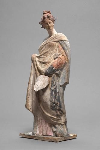 Entre los siglos IV y III a.C. estaban de moda en el mundo griego una serie de figurillas hechas de terracota, llamadas “tanagrinas”, hoy conocidas también como “Tanagras”, de un arte refinado, que eran ofrendadas en los santuarios y acompañaban a los muertos en su tránsito al más allá en ajuares funerarios.