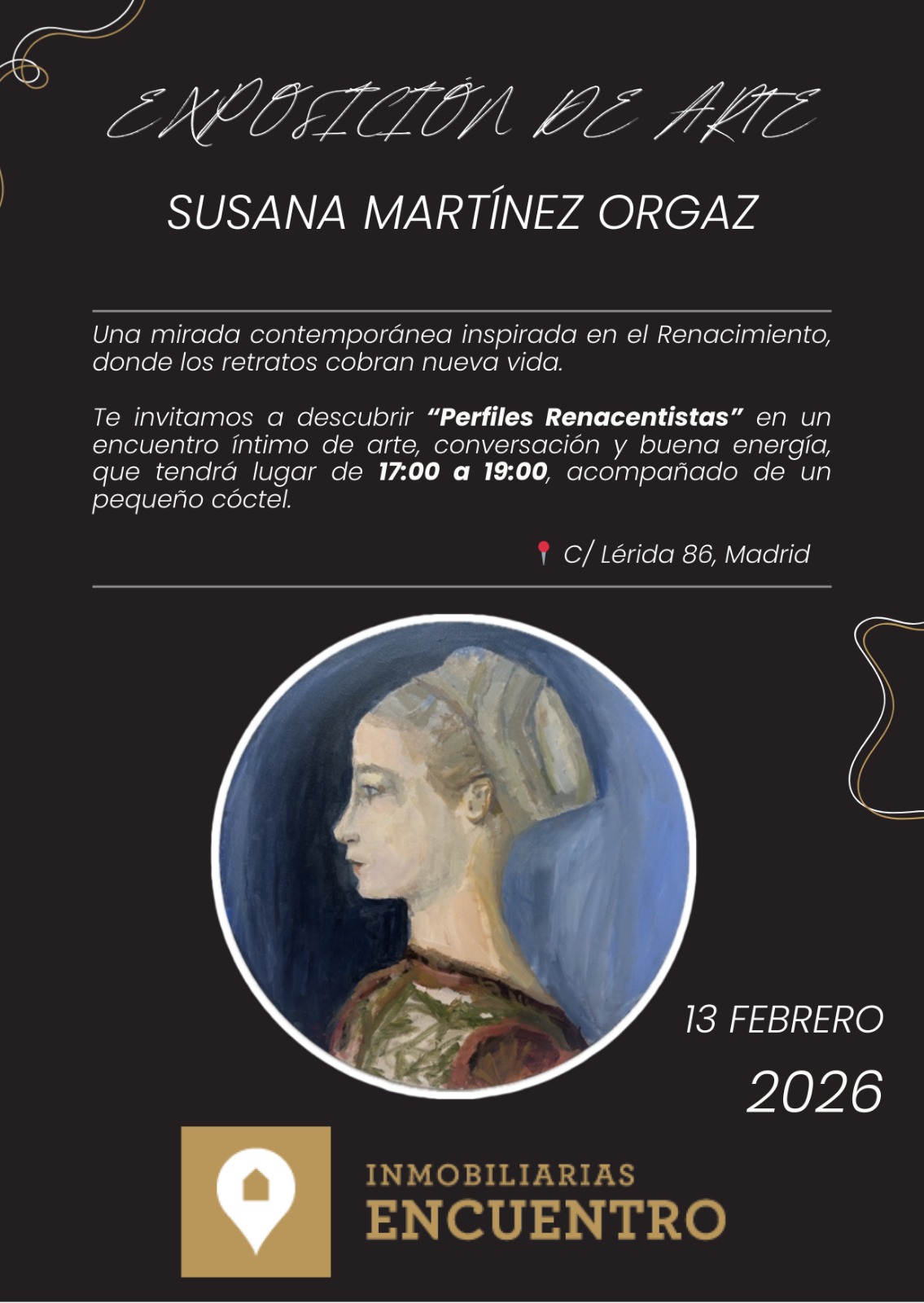 Susana Martínez Orgaz inauguró el pasado día 13 de febrero de 2026, una exposición de sus obras en la sede de Inmobiliarias Encuentro situada en la calle Lérida, 86 de Madrid.