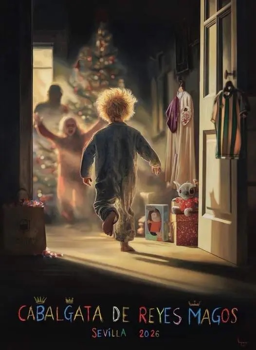 Se lo cuento a una amiga ajena al hecho cultural a quien le ha chocado la noticia. Resulta que un artista sevillano llamado Fernando Vaquero, ha hecho totalmente gratis un cartel para anunciar la Cabalgata de Reyes de Sevilla, con todo el cariño del mundo y como regalo sincero a su ciudad. El cartel es en realidad una imagen viva y recreada de su infancia, cuando a él mismo le trajeron los reyes una camiseta del Betis.
