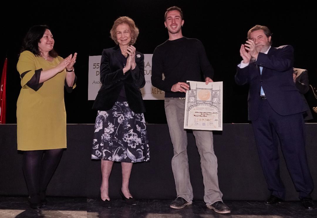 S.M. la Reina Doña Sofía entrega el Diploma acreditativo al ganador del 55 Premio Reina Sofía de Pintura y Escultura, Manuel Díaz Meré, junto a José Gabriel Astudillo López, Presidente de la AEPE y Mª Dolores Barreda Pérez, Secretaria General de la Asociación Española de Pintores y Escultores