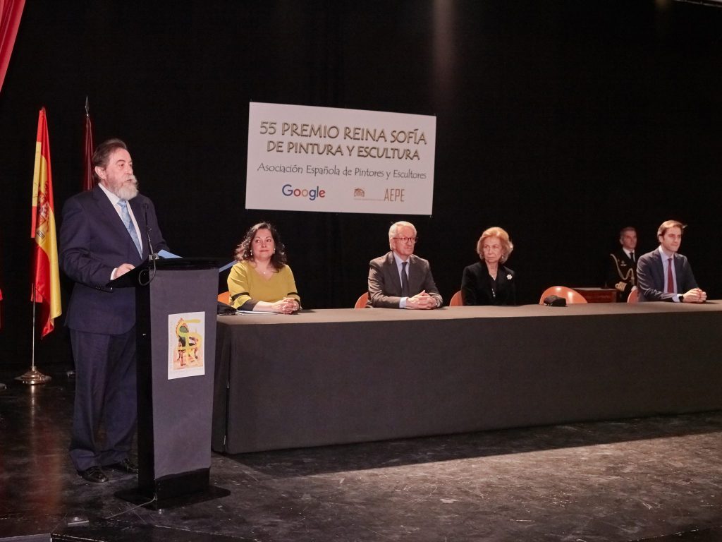 Tras los saludos iniciales, S.M. la Reina Doña Sofía presidió la mesa en el Salón de Actos habilitado  para acoger el fallo del Premio que lleva su nombre, en la que estuvo acompañada por el Director de Políticas y Asuntos Públicos de Google España, Antonio Vargas, el Presidente de la AEPE, José Gabriel Astudillo López, el Secretario de Estado de Educación, Alejandro Tiana,  gobierno y por Mª Dolores Barreda Pérez, Secretaria General de la Asociación Española de Pintores y Escultores y Secretaria del Jurado, quien presentó el acto.