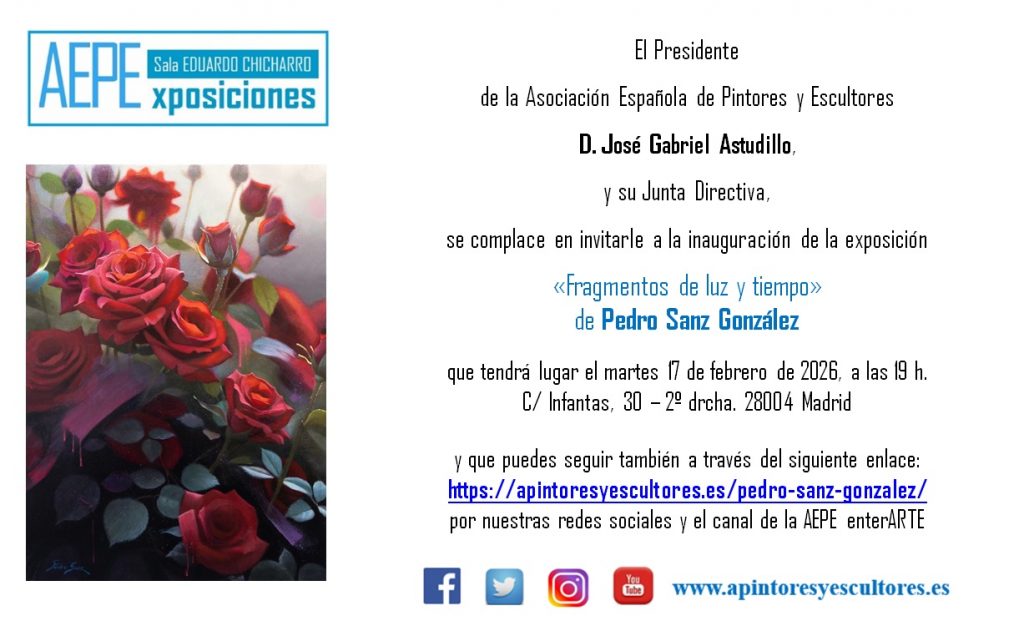 Todo ello puede seguirse además por el canal de la AEPE en Youtube y por las redes sociales en las que tiene presencia la Asociación Española de Pintores y Escultores.