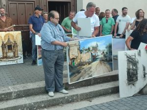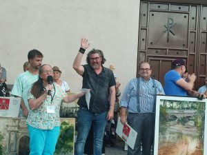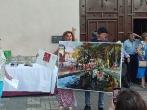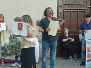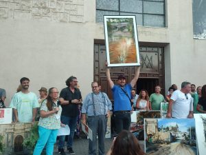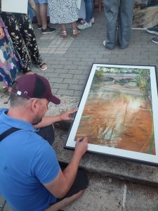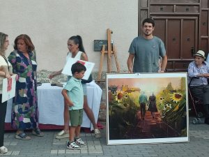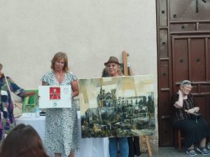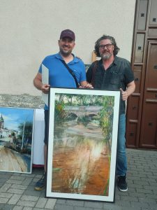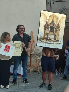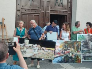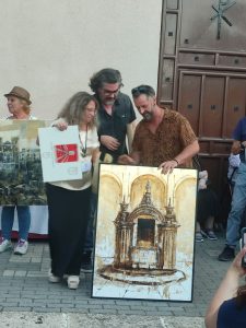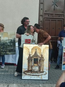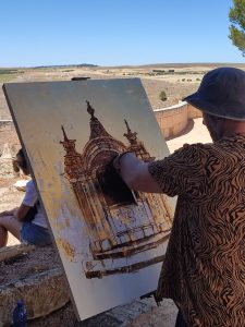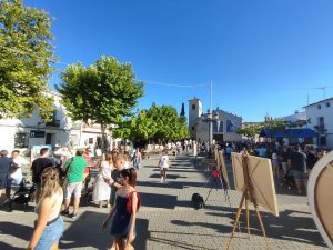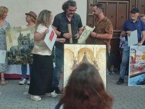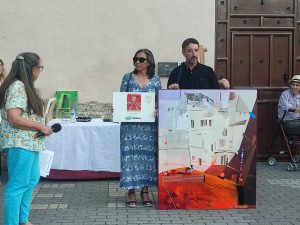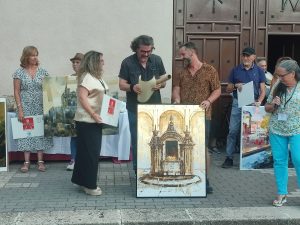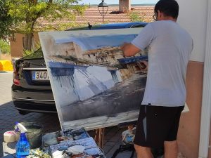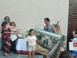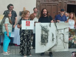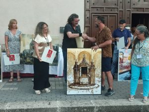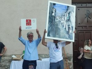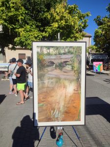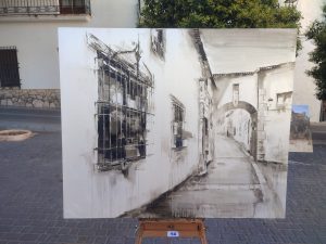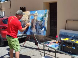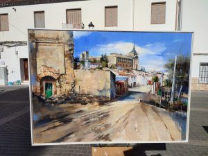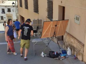 El artista ha reflejado en el cartel, su experiencia en el concurso del año pasado: “Calles llenas de gente hablando y disfrutando de la pintura. Artistas con una ilusión y compañerismo fantástico, y ver un lugar tan maravilloso lleno de caballetes y lienzos viviendo una auténtica fiesta del arte”.