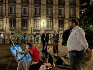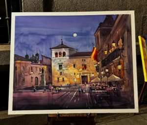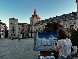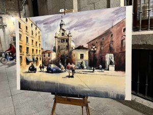 En la primera edición del Certamen de Pintura Rápida Nocturna «Madrid de los Austrias», artistas de diferentes disciplinas, tanto profesionales como aficionados, se congregaron para capturar la esencia nocturna del emblemático barrio madrileño.