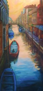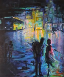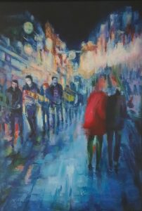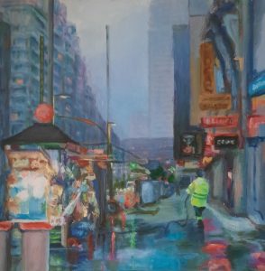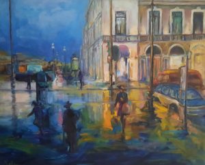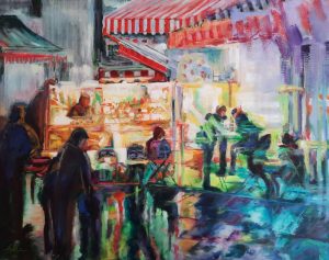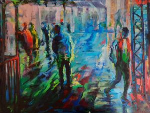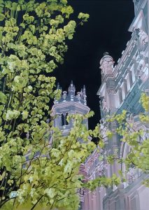 Sentiremos lo que la pintora disfruta cuando se desplaza por ambientes urbanos diferentes: deseos de volver a visitarlos.