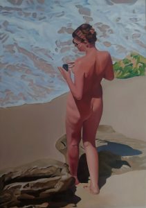 En mis pinturas, evoco tanto paisajes realizados mayormente en la sierra madrileña donde intento recoger la magia de lo cotidiano entre la naturaleza como en el mar donde el uso de los diferentes pigmentos y tonos suaves, combinan con los enérgicos en un equilibrio armónico deliberado.