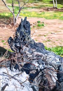 Cada cuadro intenta ser un camino para que nos comprendamos en la naturaleza. En algunas obras se generan sensaciones de estados líquidos con la intención de poder observar los movimientos del agua.