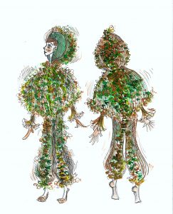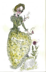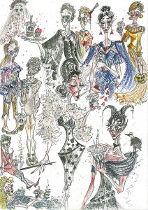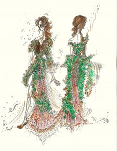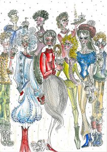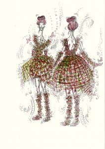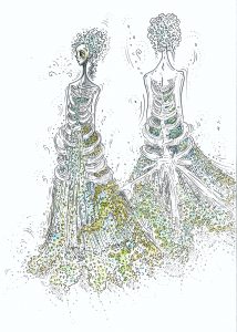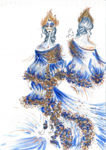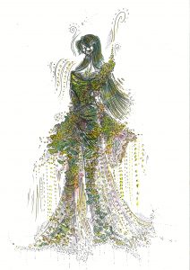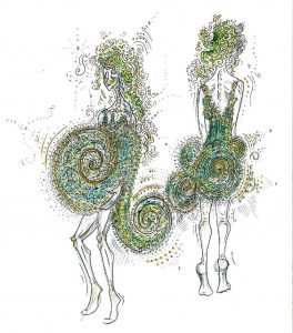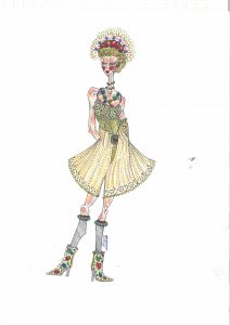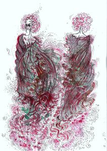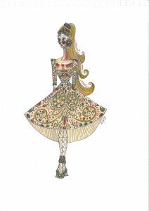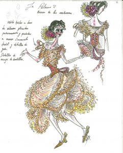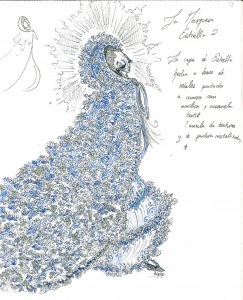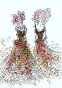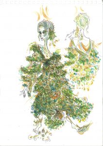 «La exposición muestra una serie de 35 figurines e ilustraciones realizadas en acuarela y tinta, acrílico, markers y lápices de colores, inspiradas en distintas épocas históricas y en distintas historias. La exposición está dividida en cinco colecciones diferenciadas en temática y contenidos. Cada colección no solo trata de captar historias únicas, sino la esencia y lo genuino de los seres fantásticos que representa, todo ello desde la mirada de una artista con una visión renacentista, influida por su propio universo imaginario, donde se entremezcla su pasión por la danza, el dibujo, la pintura, la moda y la naturaleza.