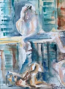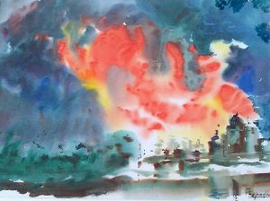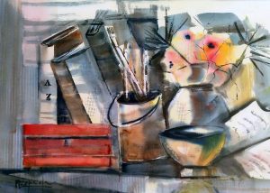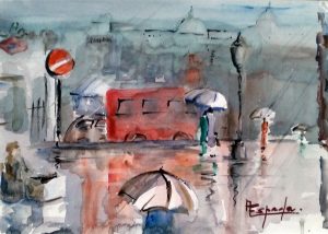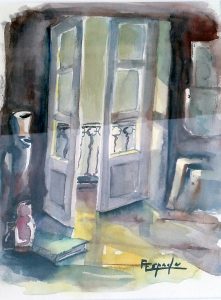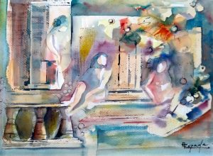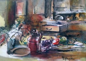 La Fundación Vital aquí, en Vitoria ya le había hecho una exposición en el 2023 a través de la Asociación Vasca de Acuarelistas, que facilitó con su afectuoso detalle el lugar y las fechas; y que fue bien acogida tanto por la admiración que suscitaba su obra como por el cariño que despertaba su persona. Abordé al Sr. Astudillo que amablemente atendía a todas las personas que se le acercaban y al considerar factible la exposición sentí un profundo agradecimiento. Hoy creo tener el privilegio de hacer realidad la idea de exponer en la sala de la AEPE estas obras de MIRADA RETROSPECTIVA que permanecen en el tiempo a mi modesto entender tan frescas como cuando se realizaron. En palabras de Ortega y Gasset: “las anotaciones, cuando un día andando el tiempo las leemos, el paisaje, la palabra, la fisonomía que desapareció, adquiere cierta supervivencia, una como espectral vida que conserva la real, vagos ecos, remotos latidos”.