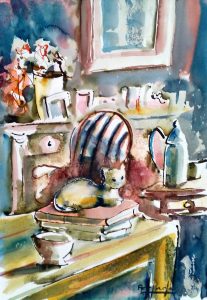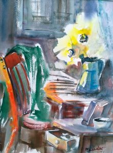 En primer lugar, dar las gracias a la Asociación Española de Pintores y Escultores y en especial a su presidente que han hecho posible la exposición. La idea surgió cuando acudí a Madrid y tuve la oportunidad y el honor de presenciar la entrega de premios en el Salón de Otoño del año 2023. El fallecimiento de mi madre tan reciente, a principios de agosto del 2021 traía a mi memoria su presencia, al contemplar las obras expuestas, el ambiente cultural que emanaba de los corrillos de pintores y visitantes, que cordialmente, intercambiaban referencias y opiniones y se informaban de la actualidad artística.