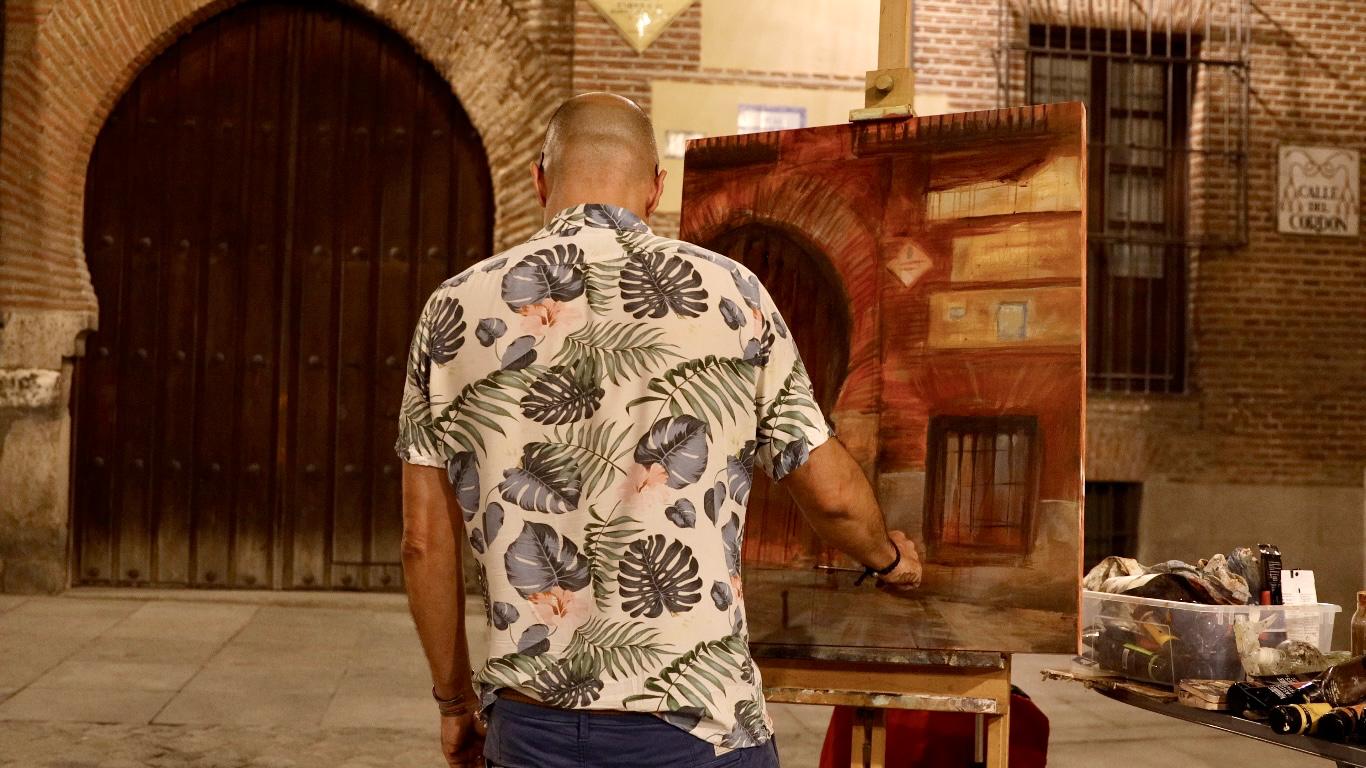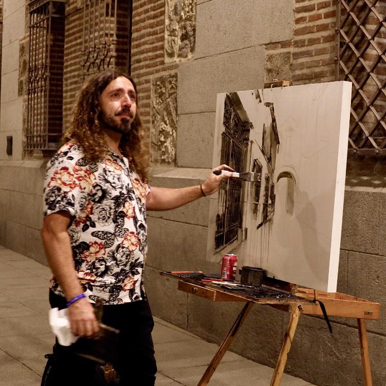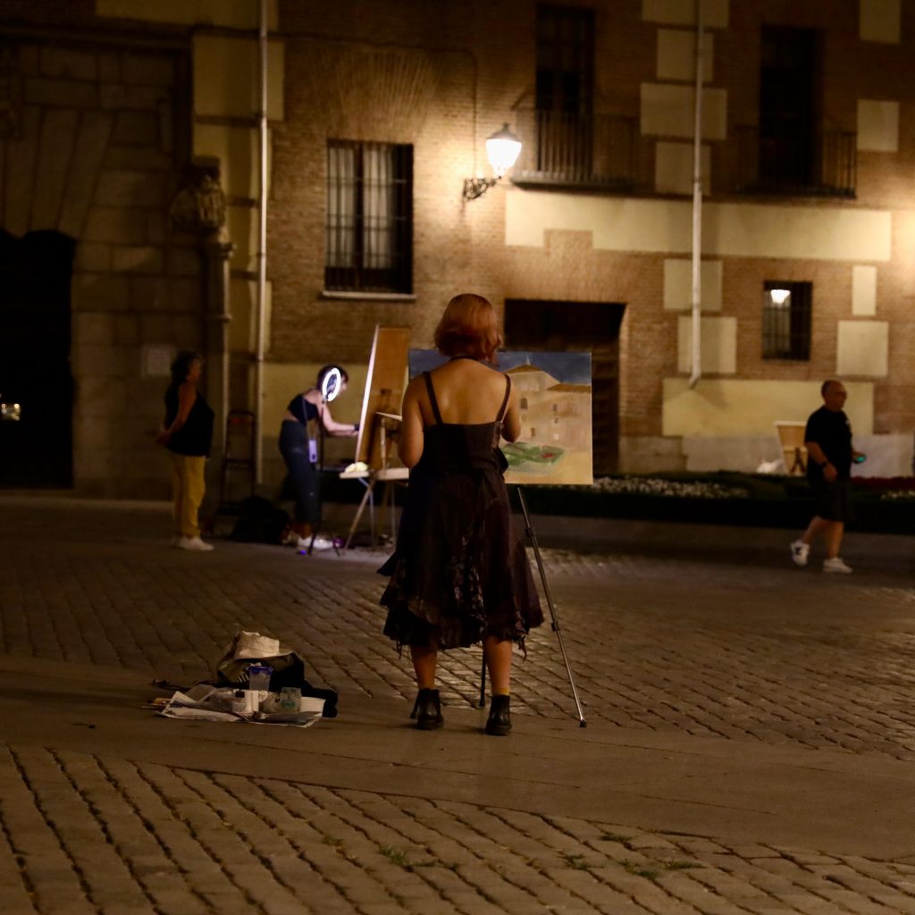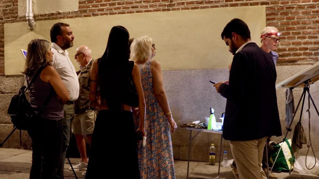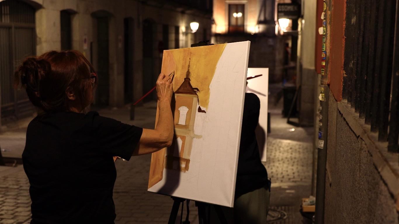 En la primera edición del Certamen de Pintura Rápida Nocturna «Madrid de los Austrias», artistas de diferentes disciplinas, tanto profesionales como aficionados, se congregaron para capturar la esencia nocturna del emblemático barrio madrileño.