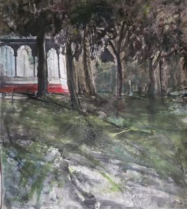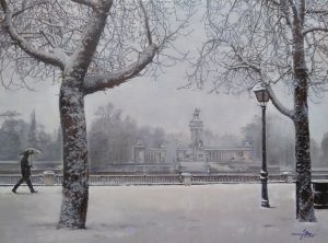 Pablo Alcalá-Zamora. Tras el Monumento a Alfonso XII. Retiro. Óleo / lienzo. 54 x 81