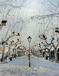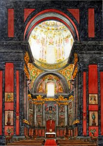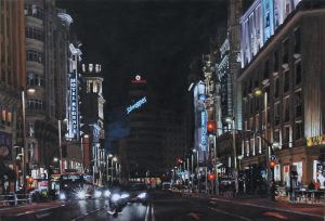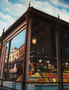 Joaquín Alarcón González. Mercado de San Miguel y reflejos. Óleo / tabla. 86 x 65