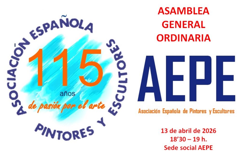 Con fecha 13 de marzo de 2026 y en cumplimiento de los Estatutos vigentes, ha quedado convocada la Asamblea General Ordinaria de la Asociación Española de Pintores y Escultores que tendrá lugar en nuestro domicilio social de la Calle Infantas, Nº 30, el próximo lunes 13 de abril de 2026, a las 18’30 h. en primera convocatoria y a las 19 h. en segunda convocatoria, con el siguiente