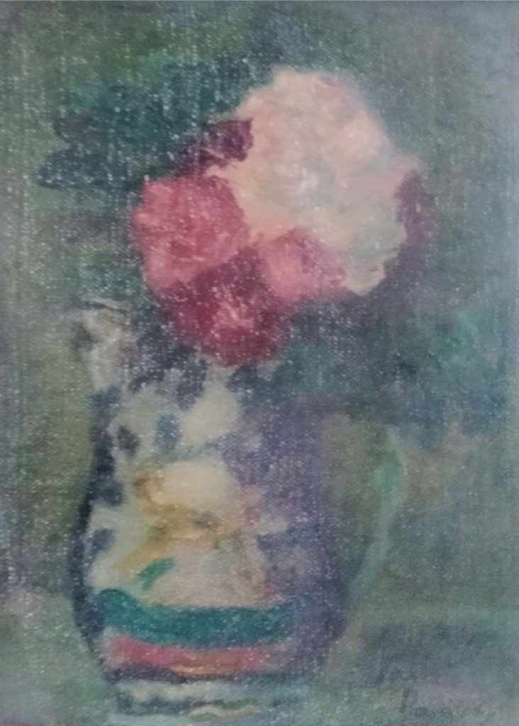 Jarrón con flores. 1947. Óleo / tabla. 27 x 22. Con marco