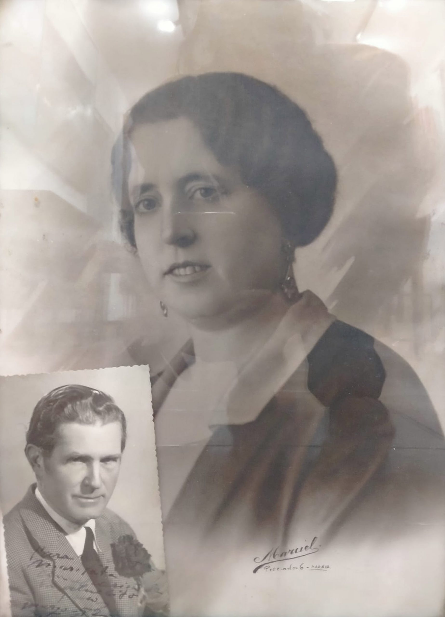 Fotografías a B y N: Francisco Pompey y mujer. 37 x 26 y 14,5 x 8,5. Con marco
