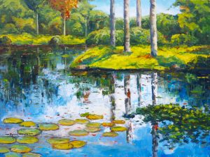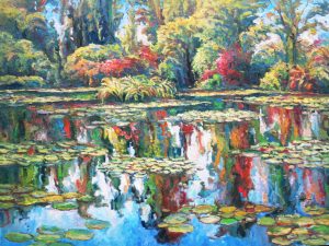 Esa investigación me permitió lograr una gran variedad de paisajes sobre el lienzo, pintando las cuatro estaciones en su mayor estado de pureza. Una vez termine esa etapa, decido estudiar el estanque de Giverny, donde el genio de paisaje Claude Monet desarrolló una serie los cuales son un gran soporte para los artistas amantes del color y la luz.