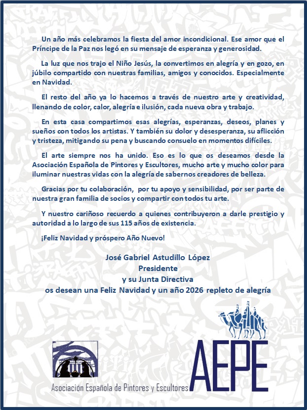 El Presidente de la Asociación Española de Pintores y Escultores felicita a todos la Navidad con sus mejores deseos.