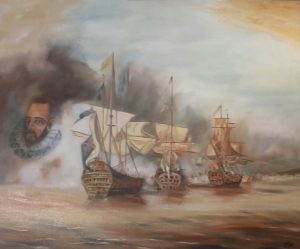 Al servicio de su majestad. Acrílico / lona. 73 x 120